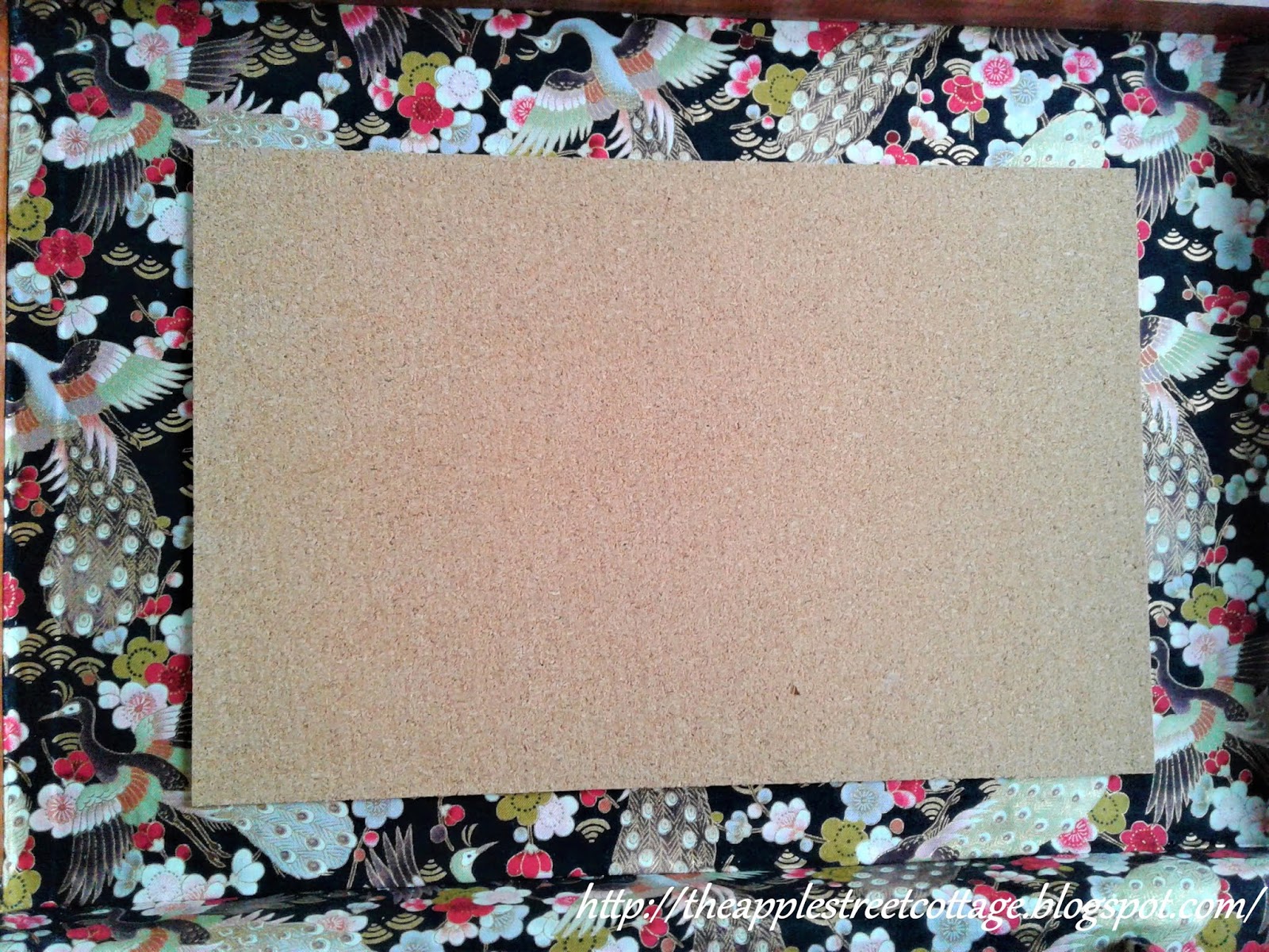 The total cost of this project was $8. The box was $5, the fabric, $2, and the adhesive cork sheet, $1. I already had the glue, gold trim, and lattice wood.