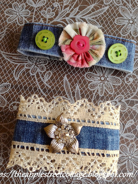 DeleteWhat a darling idea. And a great way to reuse jeans and bits of lace or ribbon. I love that you’ve customized each bracelet.